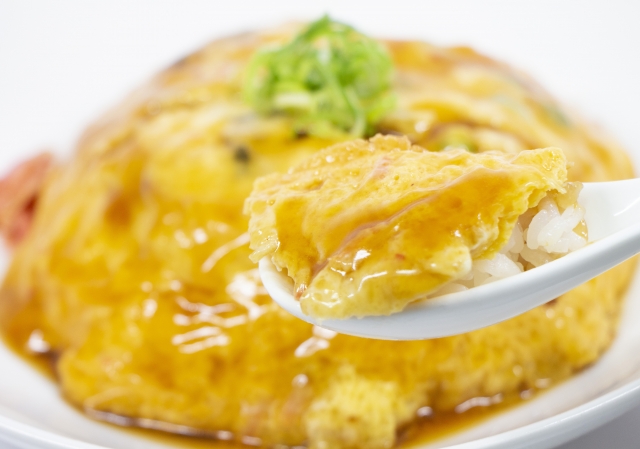 8)最後に焼いた卵にあんをたっぷりとかけて完成です。